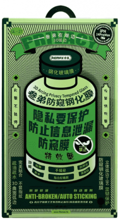 Remax Glass GL-27 Антишпион. Благодаря цветной рамке стекло выглядит как неотъемлемая часть смартфона. Оно полностью закрывает экран и защищает его при ударах от механических повреждений. При падении гаджета защитное стекло возьмет нагрузку на себя и в большинстве случаев экран остается целым. Толщина стекла всего 0.3 мм, оно тонкое и прозрачное. Будет практически незаметно на дисплее. На защитное стекло нанесено олеофобное покрытие, которое отталкивает грязь и влагу. На нем не остаются отпечатки от пальцев и его легче очистить от загрязнений, в том числе от масляных разводов. Прочность данного стекла равна 9H - это делает его износостойким и устойчивым к появлению царапин. Можно не переживать, что защитное стекло поцарапают ключи или другой острый предмет, лежащий в сумке.